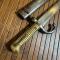 Belle poignée laiton bon état, lame yatagan belle état sans piqûre marquage net, bouton fonctionnel, marquage au dos de la lame avec trois poinçons .