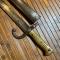 Poignée laiton bon état, lame yatagan bon etat pas piqué, pas d'accident au fil dans sa patine , bouton fonctionnel, marquage au dos de la lame avec deux poinçons et 3 poinçons au quillon tous bien visible, sabre baïonnette et fourreau au même numéro.