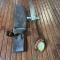 Joli couteau - Poignard, manche bois de cerf , virole maillechort , garde alu fini en boule lame profile Bowie , marquage net et poinçon sur l'autre face .