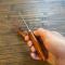 21 cm , lame 10 cm au plus large 2,2,cm tres trés bon état pas de jeu bien sur. Manche en bois d'acajous . Lame marqué BRUSLETTO CEILO MADE NORWAY