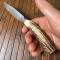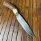 Manche en bois de Cerf , pommeau en argent décoré au trait , lame forgée Beau guillochage signé poinçonné.