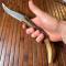 Manche en bois de Cerf , verrouillage de lame via resort à palme . Belle lame coube bien tranchante, poinçon plume et marquage À VENDOME .