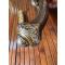 Symbole en cloutage d'argent sur la crosse quelques clous manquants.