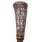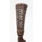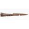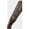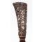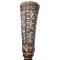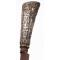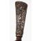 Très ancien couteau de type stylet à lame de type génoise, poignée en fer à décors ciselés en creux de rinceaux, palmettes, mufles de lion, d'un séraphin, d'un profil à l'antique et de cavaliers, incrustation d'argent, traces de dorure d'époque, belle patine. Longueur 27cm