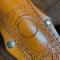 Cuir marron joliment gravé.