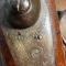 Crosse anglaise en beau bois de noyer à prise de mains finement quadrillé , plaque de couche acier , deux anneaux de grenadière pour y mettre une sangle d'épaule .