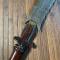 Manche et garde en bois dur exotique  , lame symétrique élargie et gravée.