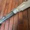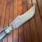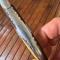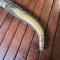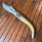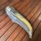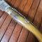 Belle lame feuille de saules, système de verrouillage à palme , resort guilloché, plaquettes en corne naturelle bicolore.