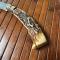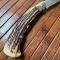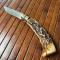 Manche pleine corne bois de Cerf , cran de sûreté rotatif, lame 8,3 cm .