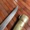 KWAIKEN à poignée et fourreau en laiton a incrustations d'argent, lame en acier tranchante.