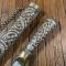 Fourreau en bois recouvert d'une plaque argent travaillé de frise au repoussé avec sa chaînette d'attache également en argent,