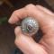 une orné d'une pierre rouge de type Rubi au talon .