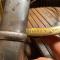 Sangle d'attache en cuir avec craquelures.