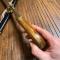 Fourreau recouvert de chagrin à trois garnitures en laiton uni et deux bracelets à décor . Dard découpé. Reproduction de style Epoque Ier Empire-Restauration sabres d'officier supérieur d'époque consulaire.