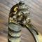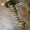Monture laiton à garde à clavier articulé qui sert à verrouiller le sabre dans son fourreau, Garde à l'ancre de Marine et courronne Royal. Fusée en galuchat peau de raie à double filigrane cuivre, pommeau à tête de Lion.