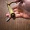 Fuse bois recouverte de cuir et filigrane laiton tressé.