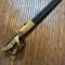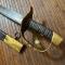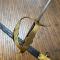 Sabre de chasseur à cheval modèle 1790, garde en laiton à trois branches plates formant le N, poinçonnée du Coq Français sur la branche principale et marquage bien visible “DUMONT” dans une barrette et poinçon 17 fusée à section carrée recouverte de basagne cuir, filigranée.