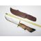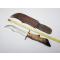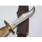 BEL ANCIEN GRAND COUTEAU DAGUE DE CHASSE - MANCHE PIED CHEVREUIL + ETUI CUIR