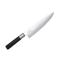 A la différence du traditionnel manche en bois japonais, le manche noir n'est pas inséré mais enclave complètement la lame qui est ainsi inamovible. Ceci empêche les saletés de s'y déposer.