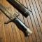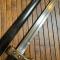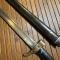 Bon état, bouton fonctionnel, belle lame finition polie sans accident, plaquettes également sans accident , fourreau fer dans son bronzage bon état .