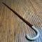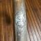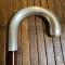 Pommeau massif courbé entièrement en argent avec monogramme gravé en lettre gothiques.