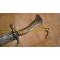 Belle dague de chasse finement gravée (sanglier et la fleche de Solingen) , forte lame (de 9mm d'épaisseur) à pans creux avec contre tranchant ,longueur 56.5cm , petite fente à la poignée sans incidence sur le fait d'être , sans aucun jeu , je joint cette chappe qui s'adapte parfaitement pour pouvoir réadapter un fourreau .