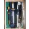 Fourreau métal garni de cuir bleu, deux bélières en cuir bleu et une dragonne bleue.