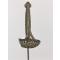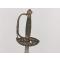 Epée d'enfant française du 19è, monture à pas d'âne en laiton à restant de dorure finement ciselée, seconde branche rejoignant le quillon, coquille arrondie ajourée et perlée, fusée entièrement filigranée, léger jeu. Lame à talon plat, arrête médiane double tranchant longue de 545mm large de 9mm. Longueur totale 67cm