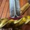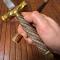 Pommeau bronze , belle fusée torsadée entièrement filigrané d'un double filigrane en alternance de laiton et cuivre tressée en chevron et un filigrane cuivre en chaînette. Quillon de garde en bronze torsadée.