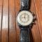 Boitier acier est associé à un bracelet en double cuir veau noir . La montre est animée par un mouvement à remontage manuel chronographe.