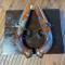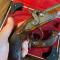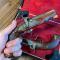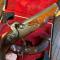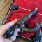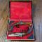 Coffret postérieur bois intérieur velours rouge à deux compartiments fermés pour bouler et amorces.