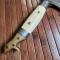 Manche en os et pommeau en corne blonde sculpté de forme zoomorphe.
