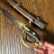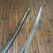 Monture en laiton à La chasseur , garde à trois branches une marquée R.E.S , poinçon circulaire et 9923, navette laiton, calotte à longue queue, poignée en bois gainé de cuir ciré noir avec clous en laiton. Lame courbe à un pan creux longueur 87 cm, poinçons : G, 14, ME, 18, et dos gravé « Manufacture Impériale du Klingenthal octobre 1811 ». Fourreau en acier à deux anneaux de bélière, marquage au premier anneau : 1966 , à la bouterole : R.E.S et 69/23.