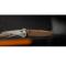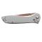 Une lame en acier CPM S90V, lisse et de forme Drop Point avec finition PVD. Ouverture avec ergot de pouce gris comme le manche pour un superbe contraste.