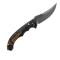 Une lame en acier inoxydable CPM-S90V (59-61HRC) excellente résistance à la corrosion. Lame lisse en forme de cimeterre. Son bord incurvé s'élargit vers l'avant et présente une pointe agressive en bout de lame.