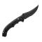 Une lame en acier inoxydable CPM-S90V (59-61HRC) excellente résistance à la corrosion. Lame mixte en forme de cimeterre. Son bord incurvé s'élargit vers l'avant et présente une pointe agressive en bout de lame. Une finition cérakote noir pour éviter les reflets et les rayures.