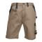 Bermuda bicolore avec une ceinture élastiquée côtés, une braguette zip spirale, 2 poches italiennes, à gauche : 1 poche à rabat fermé par auto-agrippant + système porte-outils - au dos : 1 poche à rabat fermé par auto-agrippant, 8 poche téléphone, 1 poche mètre, 1 porte manteau - des empiècements contrastants et des points d'arrêt verts. Composition : 60% coton et 40% polyester. Poids : 280 g/m2. Tailles : 40 au 52. Coloris : Beige.