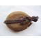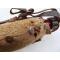 Housse en feutrine kaki, fermeture par trois boutons pressions à noeuds hongrois, typique des fabrications fin de guerre. Manque d'un côté du goulot.
