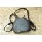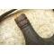 Bandoullière en cuir noir, probablement postérieure, en bon état, légèrement craquelée. Boucles en fer, petite oxydation.