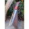 BIG Couteau Buscharft Survie Bowie Lame Acier Carbone 1075 Etui Cuir Manche Bois couleurs Automne Fabric Artisanale