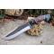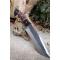 BIG Couteau Buscharft Survie Bowie Lame Acier Carbone 1075 Etui Cuir Manche Bois/Résine Fab Artisan