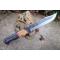 BIG Couteau Buscharft Survie Bowie Lame Clip Point Carbone 1075 Etui Cuir Manche Bois Fab Artisanale