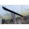 Machette Bowie Machette Guide d'Amazonie à lame fixe - Longueur du manche 14cm - Longueur de lame 45cm - Lame en acier 3Cr13 - Lame finition black - Fonction scie sur le haut - Construction d'une seule pièce - Full Tang - Grosse Garde intégrée dans le manche - Manche en Abs haute résistance - Black & orange - Trou avec dragonne - Etui nylon
