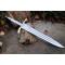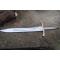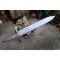 Couteau Knifemaking Hunting Dagger - Lame seule à customiser le manche. Longueur totale 39.5cm. Longueur de lame 27.50cm. Lame en acier carbone 1055. Epaisseur de lame 4.5mm. Lame de type dague double tranchant. Grosse garde en laiton. Choisissez un beau manche et vous obtiendrez une pièce unique. Pas de vis en bout de manche.