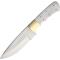 Longueur totale 23.19cm. Longueur de lame 11.76cm. Epaisseur de lame 3.17mm. Lame acier inox finition satin. Lame de type drop point plain edge. Garde en laiton. Lame construction d'une seule pièce.