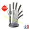 BLOC COUTEAUX DE COUPE DECOUPE POUR CUISINE LAME INOX CISEAUX 8Pcs AVEC SUPPORT ET MANCHE BOIS