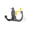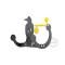 Le centre de la silhouette du corbeau est ajouré, laissant apparaître une palette jaune, qui une fois touchée, recule et libère le trou, tout en imprimant un mouvement de bascule à la cible, posée sur des arceaux.