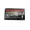 CATEGORIE : C CALIBRE : 243WSSM CONDITIONNEMENT : 20 TYPE OGIVE : BALLSITIC SILVERTIP POIDS OGIVE (GRS) : 55 VITESSE V0 (m/s) : 970 ENERGIE V0 (JOULES) : 2400