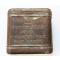 Peu courante boite de chocolat Meunier en tôle estampée sur le côté et le couvercle, daté de mars 1916, usine de Noisiel Seine et Marne, distribuée à la troupe pour réconfort dans les trachée du premier conflit mondiale 1914/1918. usures, coups et manque.