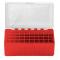 BOITE DE RANGEMENT ROUGE COUVERCLE TRANSPARENT 50 MUNITIONS CAL 357 MAG